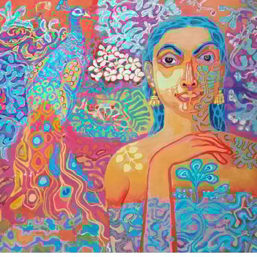 My recent works focus on the symbolic interplay between femininity and nature, presenting womanhood and the environment as interconnected forces of creation and transformation. Ultimately, my art seeks to express spiritual connection, uphold human values, and affirm the essence of life.